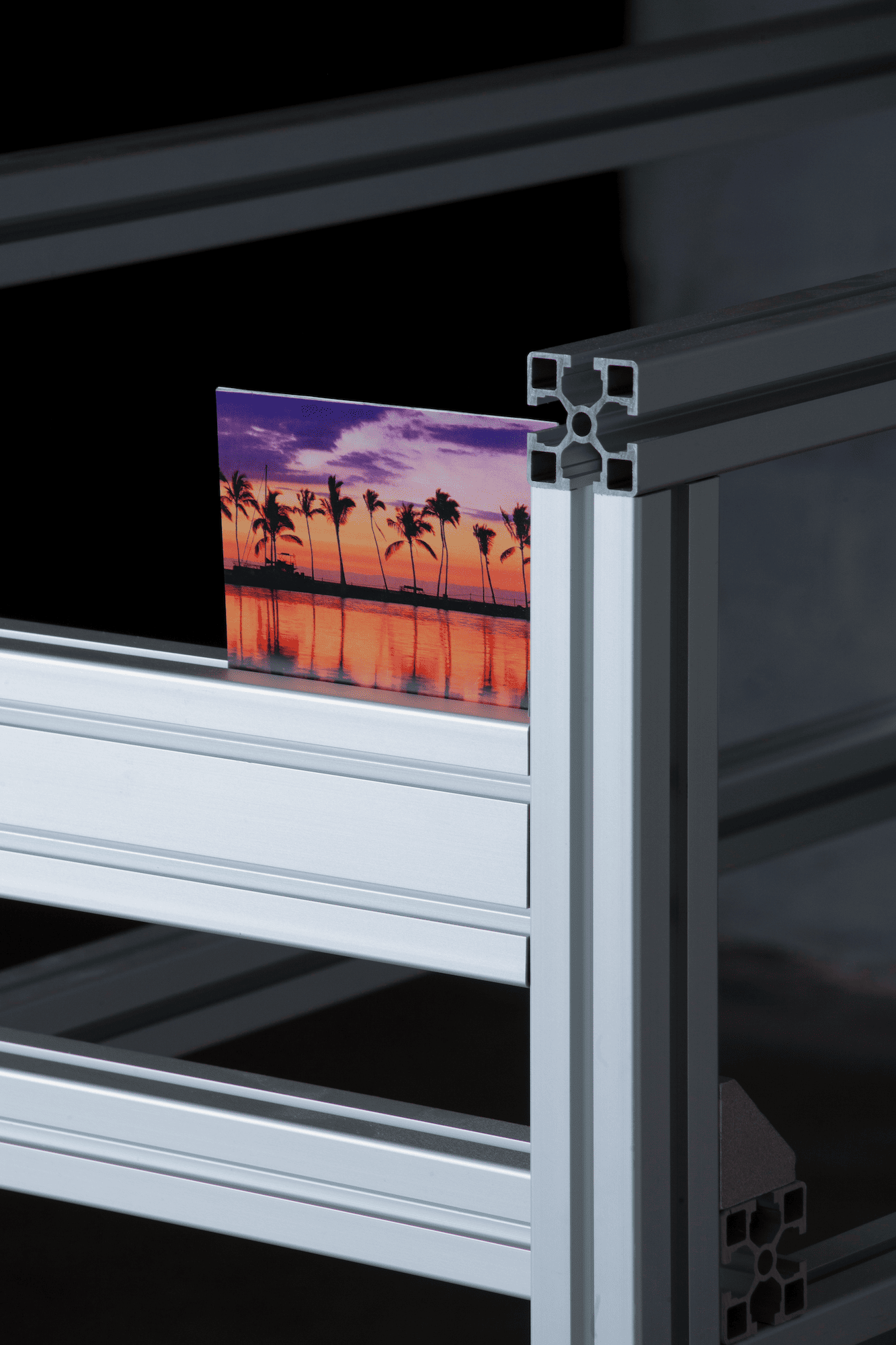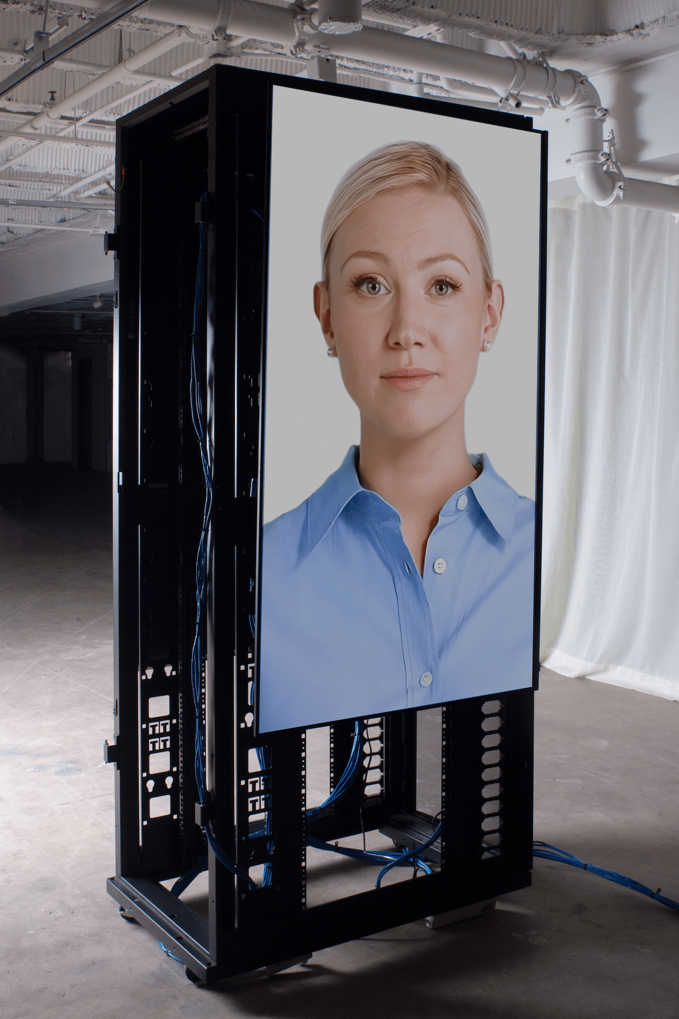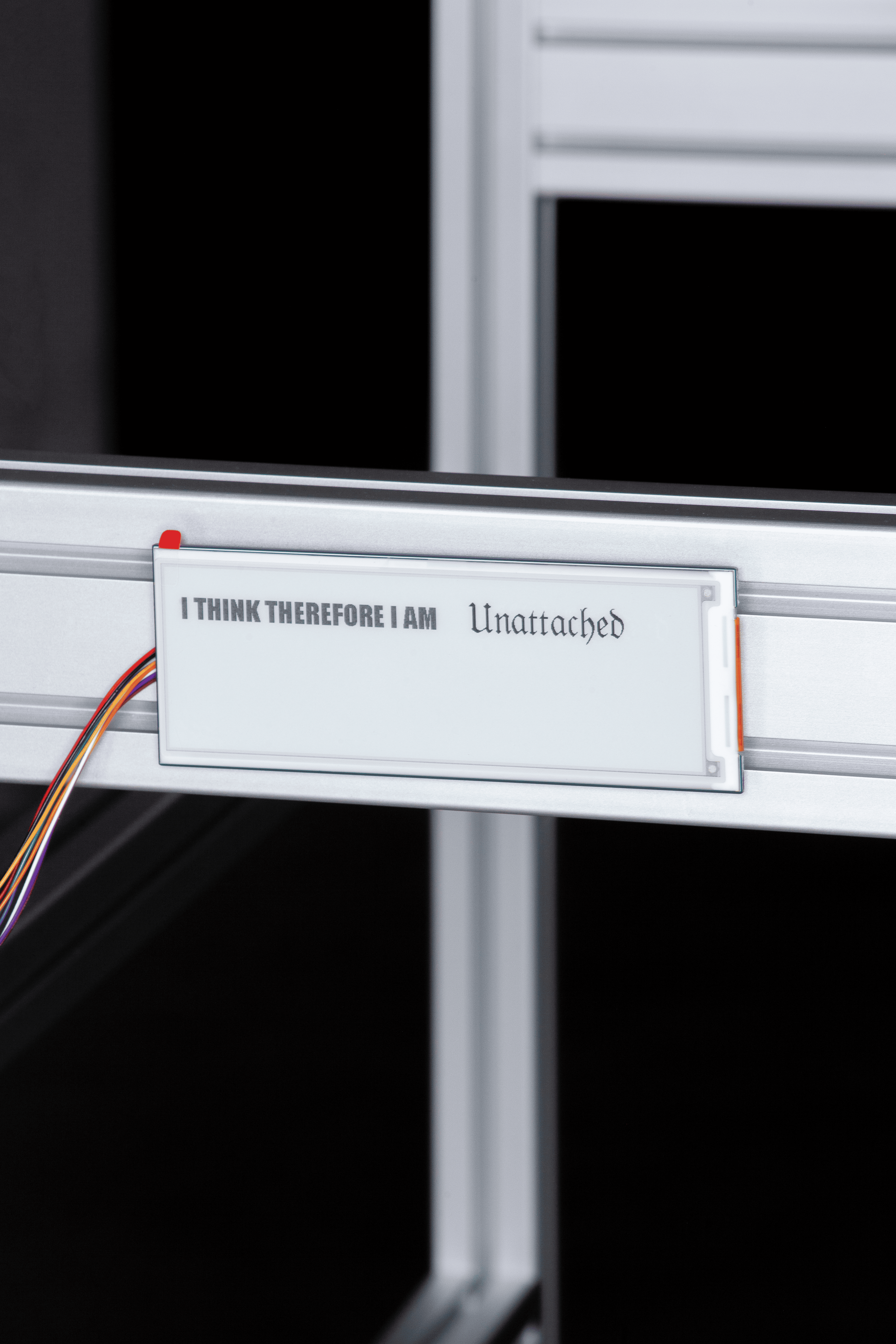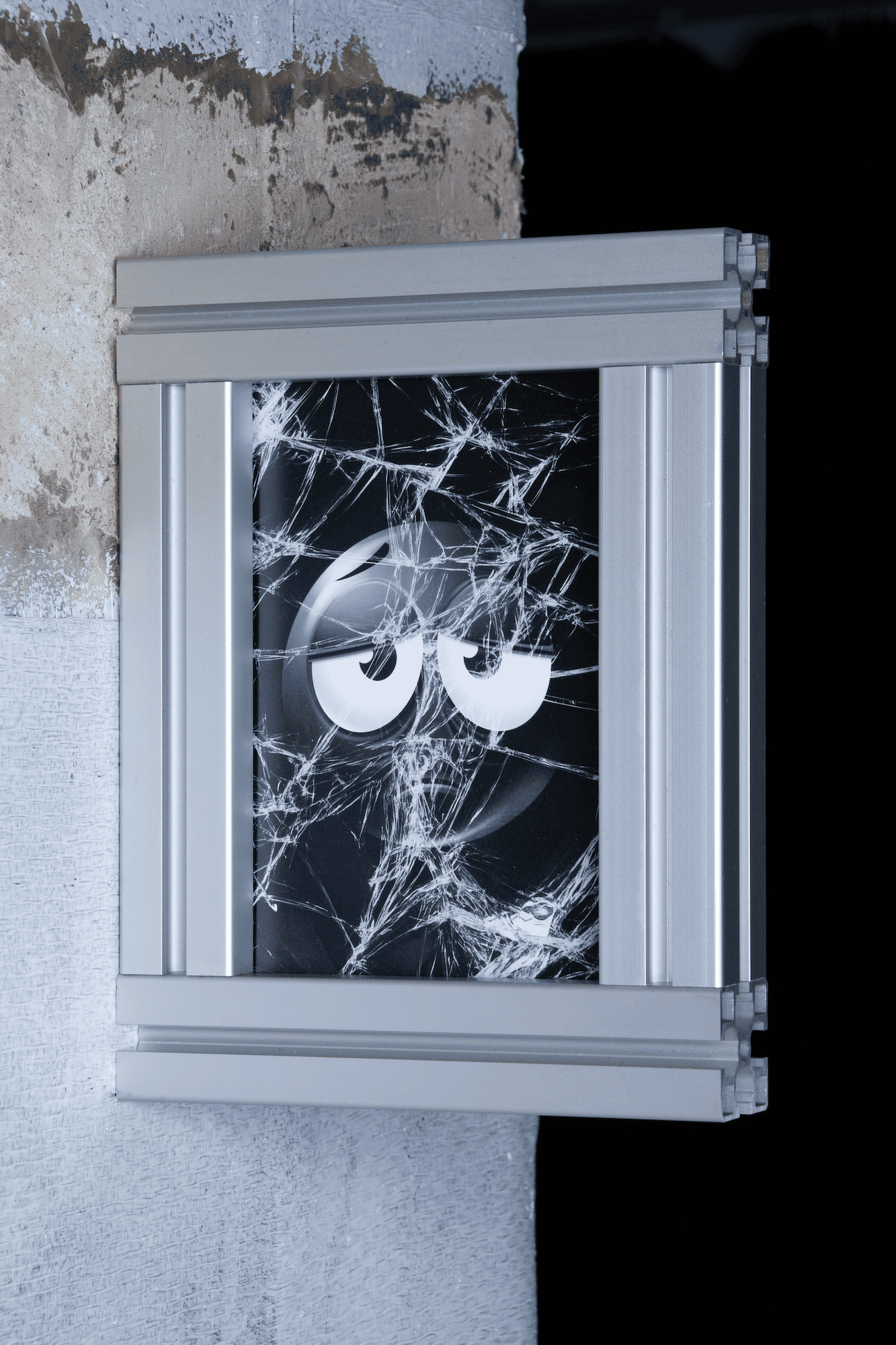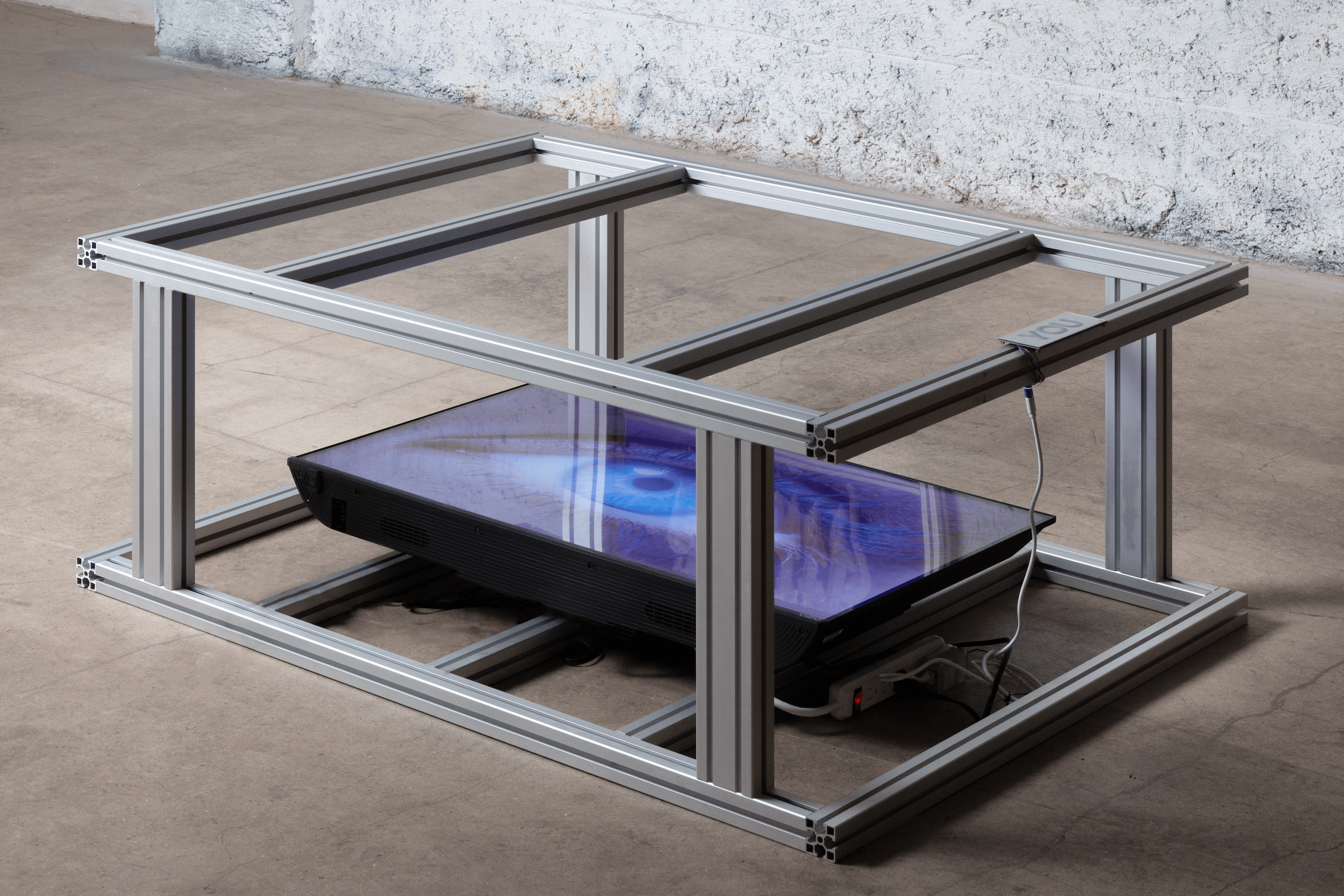 Fournier uses elements of internet visual language—such as the decaying aesthetics of deep-fried memes and sad emojis—with a range of industrial materials like server racks, TV mounts, and aluminum frames, evoking the erosion of meaning amplified by Basar’s daring slogans. Live webcam feeds of deserted, paradisiacal beaches—once symbols of escape—now suggest a haunting sense of loss and disconnection, reinforcing the exhibition’s themes of unavoidable loneliness and the fleeting tension between *reel* and *possible* experiences.